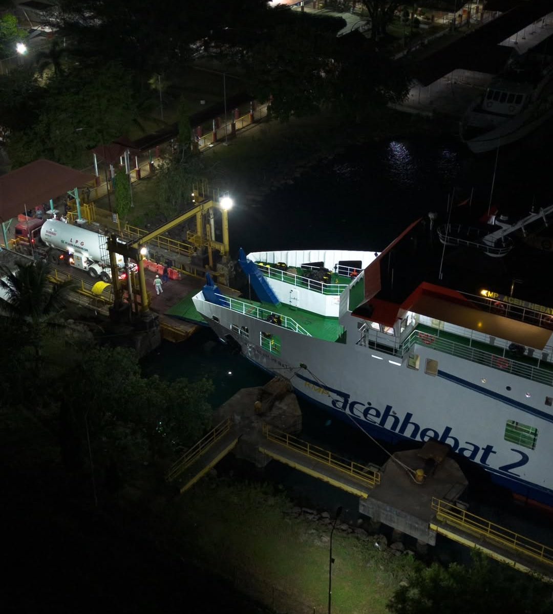 Pemerintah Aceh melalui Dinas Perhubungan Aceh memfasilitasi keberangkatan 8 unit kendaraan SKID Tank LPG menggunakan kapal KMP Aceh Hebat 2 ke Krueng Geukueh pada Jumat malam, 5 Desember 2025.