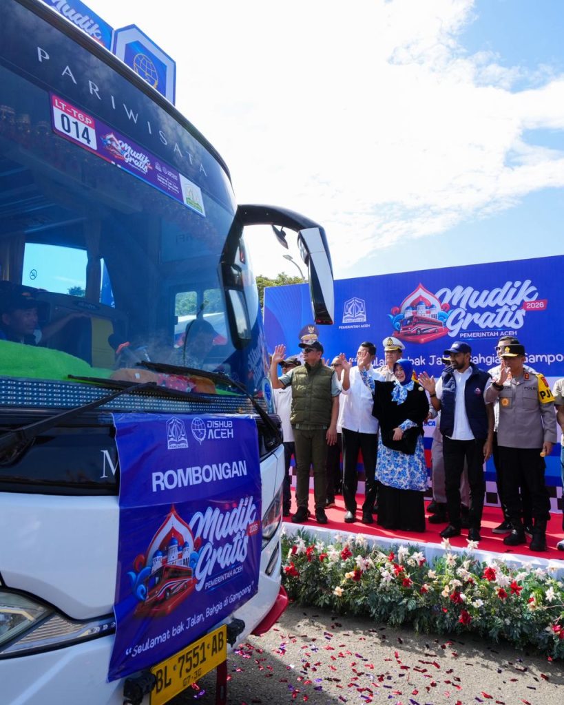 Banda Aceh – Gubernur Aceh H. Muzakir Manaf melepas rombongan peserta Program Mudik Gratis Pemerintah Aceh dari Depo Trans Koetaradja, Banda Aceh, Minggu, 15/03. Program yang diselenggarakan melalui Dinas Perhubungan Aceh itu digelar untuk membantu masyarakat pulang ke kampung halaman menjelang Hari Raya Idul Fitri 1447 Hijriah dengan lebih aman, nyaman, dan terjangkau. Hadir dalam kegiatan itu Kapolda Aceh, Sekda Aceh, Kabinda Aceh, anggota Majelis Tuha Peut Wali Nanggroe Aceh, Anggota DPR Aceh, Rektor USK, Wali Kota Banda Aceh, Kepala BNN Aceh, Kepala SKPA dan Kepala Biro di lingkungan Setda Aceh serta beberapa pejabat instansi vertikal lainnya. Pada kesempatan itu, Mualem, sapaan akrab Muzakir Manaf, juga menyerahkan santunan kepada anak yatim. Mualem mengatakan, tradisi mudik merupakan momentum penting bagi masyarakat untuk kembali berkumpul bersama keluarga serta mempererat silaturahmi setelah menjalani aktivitas sepanjang tahun. “Tradisi mudik merupakan momen yang sarat makna. Ia bukan sekadar perjalanan pulang, tetapi juga momentum mempererat silaturahmi serta menghadirkan kembali kehangatan kebersamaan di tengah keluarga,” kata Muzakir Manaf. Gubernur menjelaskan, Pemerintah Aceh menghadirkan program mudik gratis untuk membantu masyarakat menghadapi tingginya biaya perjalanan sekaligus mengurangi penggunaan kendaraan pribadi yang berpotensi meningkatkan risiko kecelakaan selama arus mudik dan arus balik Lebaran. Program tersebut juga diharapkan dapat mendukung pengendalian inflasi daerah dengan menjaga kelancaran distribusi dan mobilitas masyarakat selama periode libur Idul Fitri. Tak lupa Mualem juga mengingatkan kepada pengemudi untuk berhati-hati saat berkendara dan mengutamakan keselamatan penumpang di perjalanan. “Jika lelah istirahat. Utamakan keselamatan di jalan. Keluarga menunggu di kampung halaman. Salam kami kepada keluarga di kampung halaman.” Sementara itu, Kepala Dinas Perhubungan Aceh T. Faisal mengatakan program mudik gratis merupakan upaya Pemerintah Aceh menyediakan layanan transportasi yang aman dan terjangkau bagi masyarakat selama periode mudik dengan dukungan 17 perusahaan dari unsur BUMN, BUMD, perbankan, dan swasta di Aceh. Menurut Faisal, antusiasme masyarakat terhadap program tersebut cukup tinggi. Hal itu terlihat dari jumlah pendaftar yang mencapai 3.328 orang melalui sistem pendaftaran daring di laman seulamat.dishubaceh.com, sementara kuota yang tersedia untuk angkutan darat Pemerintah Aceh sebanyak 2.070 orang. Untuk melayani pemudik tersebut, Dinas Perhubungan Aceh menyiapkan 122 unit kendaraan yang terdiri dari 27 unit bus besar dan 95 unit Hiace dengan 18 rute tujuan ke berbagai kabupaten/kota di Aceh, terutama wilayah yang sebelumnya terdampak bencana hidrometeorologi. Seluruh peserta mudik diberangkatkan secara bertahap dari Depo Trans Koetaradja pada 15 hingga 17 Maret 2026. Selain layanan dari Pemerintah Aceh, program mudik gratis tahun ini juga mendapat dukungan dari Kementerian Perhubungan dan BUMN melalui layanan angkutan darat dengan kuota sekitar 709 orang. Sementara untuk wilayah kepulauan, disediakan layanan mudik gratis melalui angkutan laut dengan delapan rute pelayaran menggunakan kapal ro-ro dan kapal cepat dengan total kapasitas 3.642 penumpang. “Dengan dukungan berbagai pihak tersebut, total kuota mudik gratis yang tersedia di Aceh tahun ini mencapai 6.421 orang,” kata Faisal. Ia menambahkan seluruh armada yang digunakan dalam program tersebut telah melalui pemeriksaan kelaikan kendaraan atau ramp check guna memastikan kendaraan yang beroperasi selama masa mudik benar-benar layak jalan dan aman digunakan oleh masyarakat. Selain itu, para pengemudi juga telah diperiksa kondisi kesehatannya, termasuk melalui tes urin. “Ramp check dilakukan untuk memastikan kendaraan yang beroperasi selama masa mudik benar-benar layak jalan dan aman digunakan oleh masyarakat,” kata Faisal. Salah seorang peserta mudik gratis, Putri, mengaku sangat terbantu dengan adanya program tersebut. Ia mengatakan mengetahui informasi mudik gratis dari media sosial Dinas Perhubungan Aceh setelah diberitahu oleh rekannya. Perempuan yang akan mudik ke Medan itu mengaku sudah sekitar satu tahun tidak pulang ke kampung halaman. Ia mengatakan hal yang paling dirindukannya dari rumah adalah suasana hangat kebersamaan bersama keluarga, terutama saat makan bersama. “Alhamdulillah senang sekali bisa ikut mudik gratis tahun ini. Tahun lalu saya tidak dapat kuota, tapi tahun ini akhirnya dapat,” ujarnya. Menurutnya, program mudik gratis sangat membantu masyarakat, terutama di tengah harga tiket perjalanan yang cukup mahal menjelang Lebaran. Ia berharap program tersebut dapat terus dilaksanakan setiap tahun dengan kuota dan rute yang lebih banyak agar semakin banyak masyarakat yang dapat merasakan manfaatnya. []